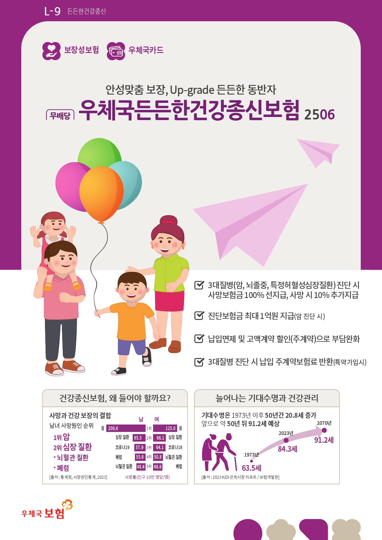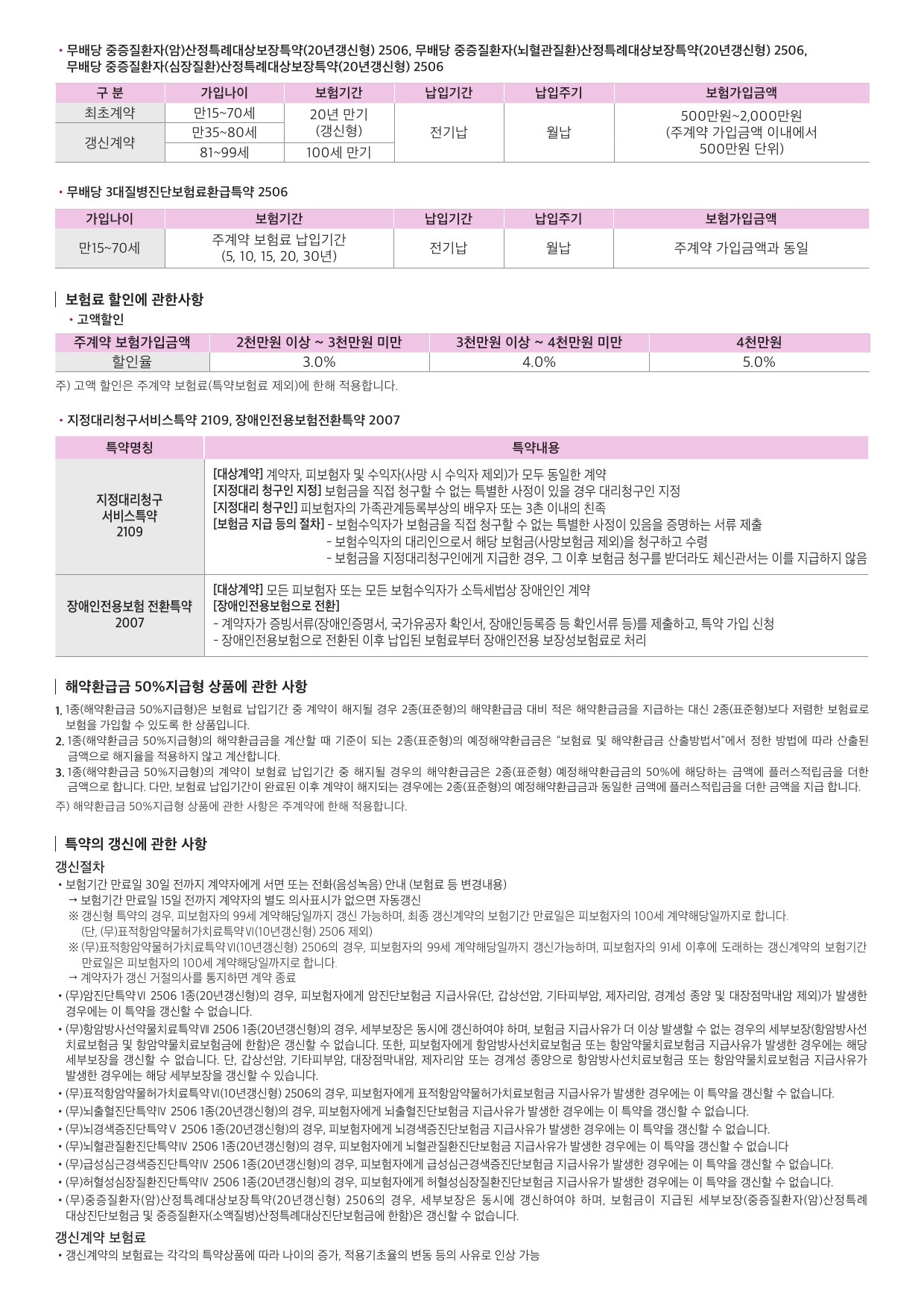 +3대질병(암,뇌졸중,특정허혈성심장질환) 진단 시 사망보험금 100% 선지급, 사망 시 10% 추가지급