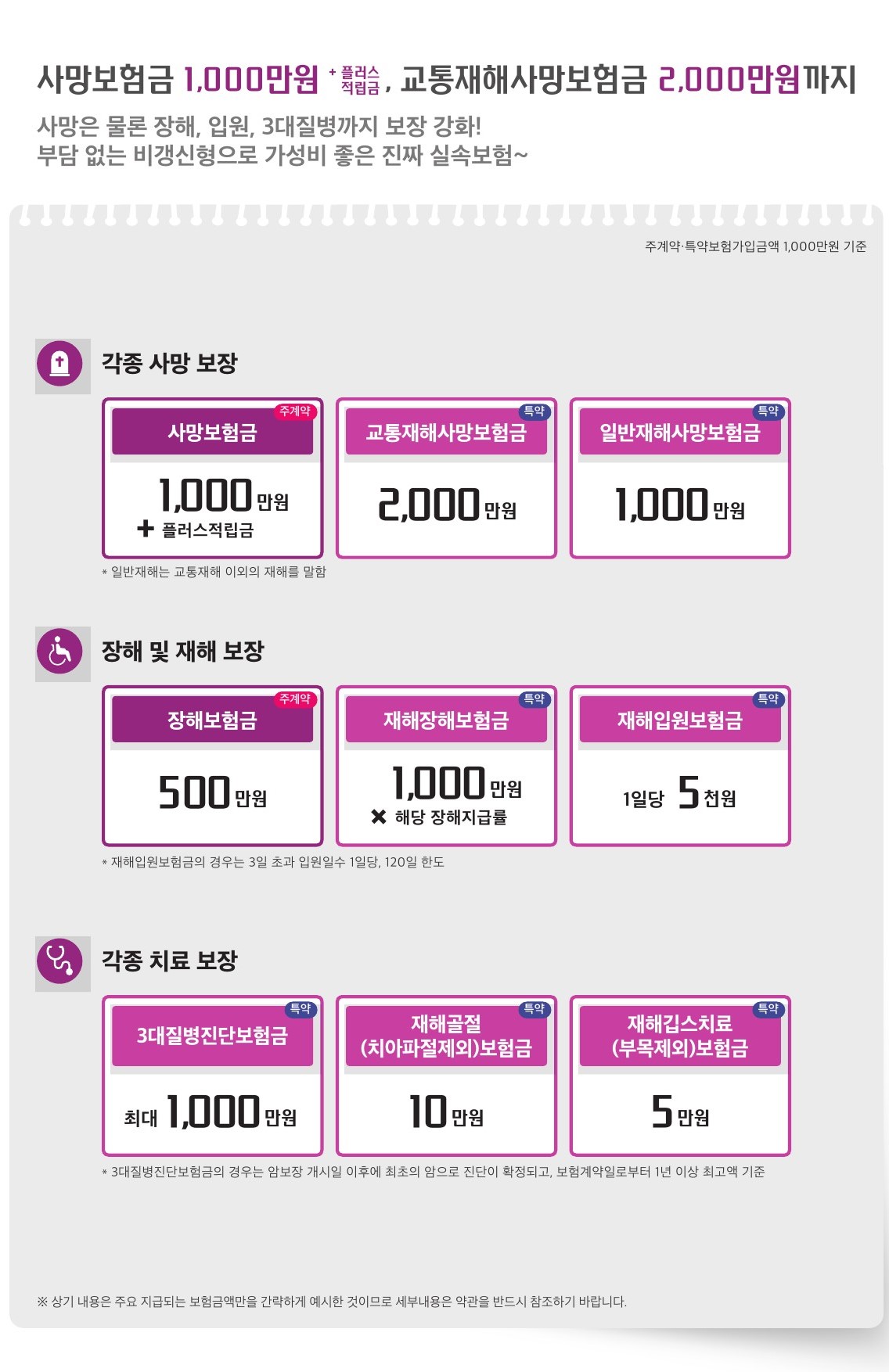 +사망,장해,입원,3대질병 등 보장